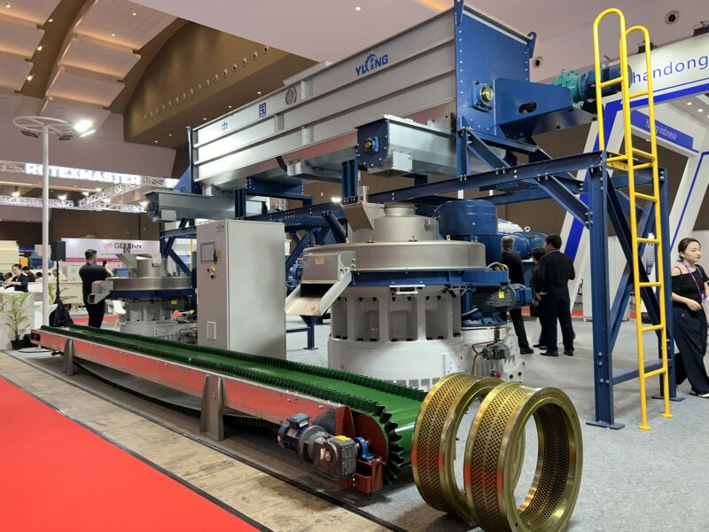 Shandong Bison Machine Co., Ltd. successfully showcased industrial wood processing solutions at IFMAC Jakarta (2024.9.25-28), featuring the SSJ150 dual-roller shredder (55KW*2), TR-A80130 chipper (315KW), GXP75120 crusher with metal detection, and integrated pellet production line with twin-shaft silo & XGJ560/850 pellet mills. The exhibition achieved high engagement, demonstrating BISON MACHINE's leadership in sustainable biomass equipment innovation.